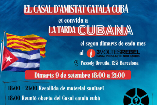 Des d’aquest dimarts 9 de setembre de 2025, tornen les tardes cubanes al Casal Popular 3 Voltes Rebel, gràcies al Casal Català Cubà de Barcelona, de 18.00 a 21.00 h! Vine a la reunió oberta, col·labora amb la recollida de material sanitari… o juga al Trivial Cubà!
